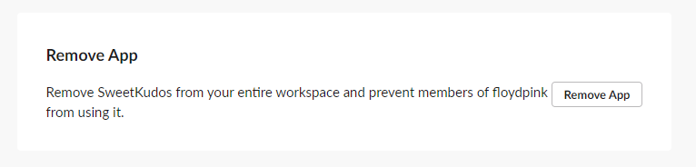 You can remove Asante Bot from your Slack workspace by visiting your Slack manage apps screen. Once there, click on the Asante Bot bot and go to the bot Settings page. At the bottom of the Settings page is a red remove app button. Click that to remove Asante Bot.