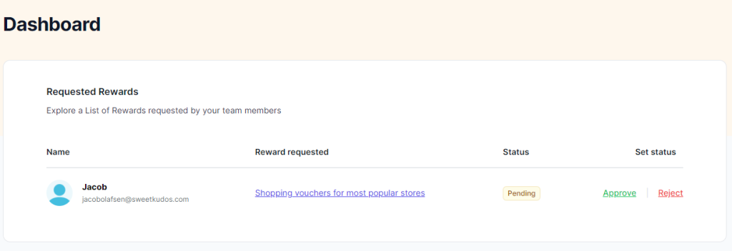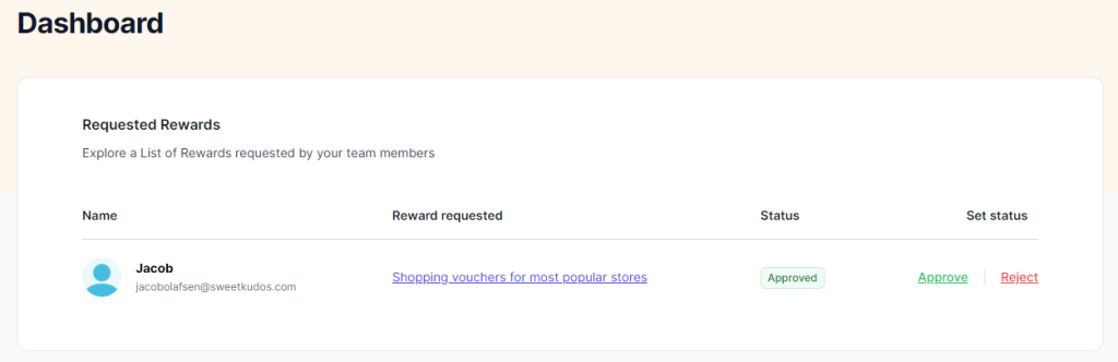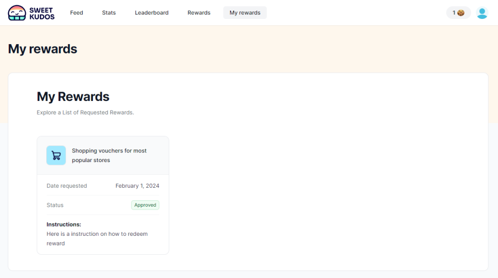 Once the Reward request is approved, the user who has requested the reward should get an updated request status and Redemption instructions.