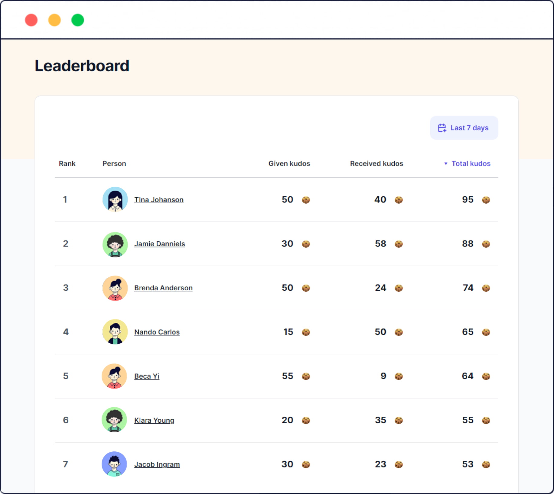 You can sort users by Givers, Receivers and and top Kudos earners.